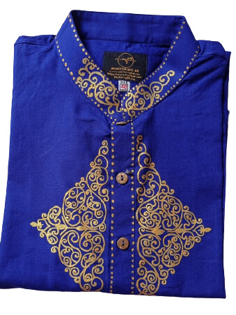 Men’s Hand Painted Panjabi – Indian Cotton – Blue
