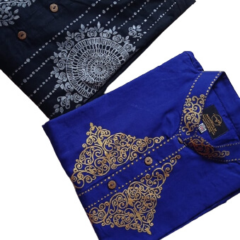 The demand for hand painted Panjabi & clothes is increasing day by day. Along with girls, boys now prefer to wear hand-painted clothes. One of the favorite clothes of the boys is Punjabi. And if that Punjabi is hand painted then the beauty of Punjabi comes out more. Punjabi is made by painting the design as per your choice. Which boys like to wear more. And so we are giving you the best hand-painted designs of your choice with Punjabi made of the best fabric. You can paint the design of your choice in Punjabi. What should be worn is comfortable as well as proper fitting. Our Punjabis are made in combination of the best quality fabrics with the best hand painted designs.